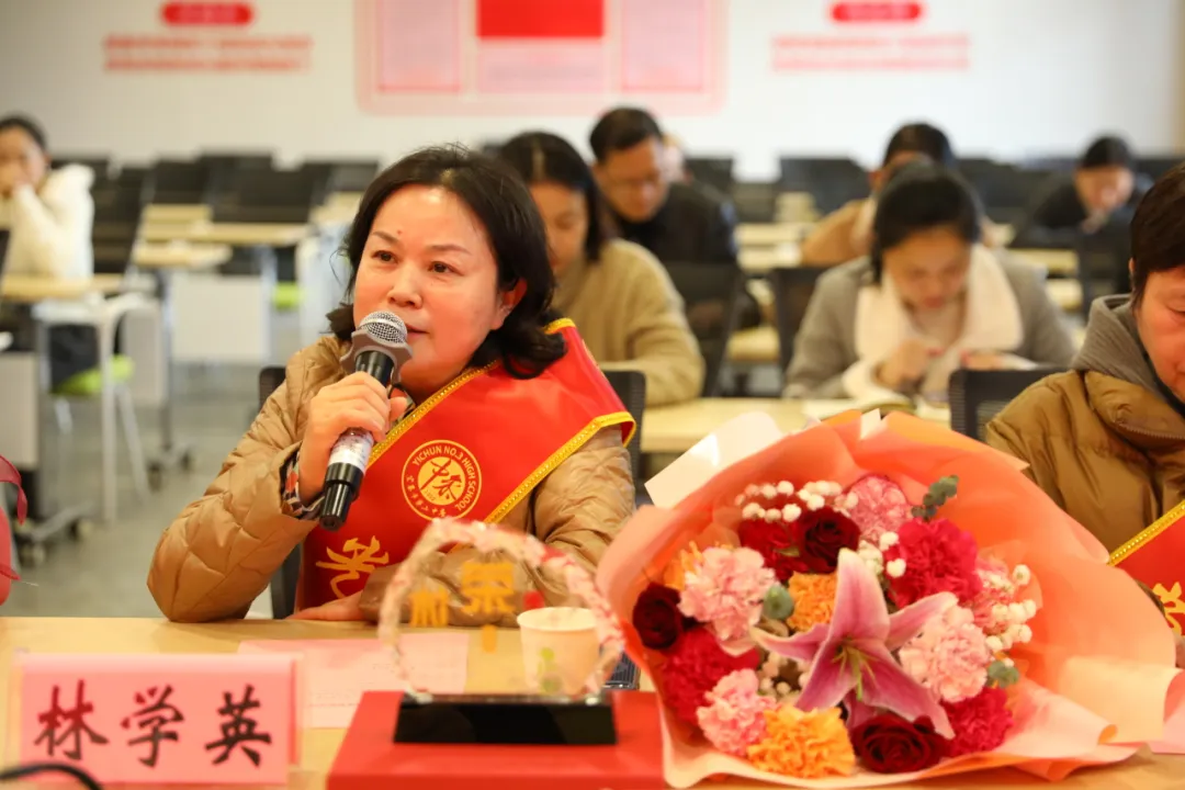 退休教师代表蔡春珍、潘艳清、林学英、姚遥依次发表感言,回顾在学校的工作点滴,分享与同事并肩、与学生相伴的温暖记忆,深情感恩学校多年的培养与关怀。四位老师均表示,退休后仍会心系学校发展,持续关注学校进步,并寄语青年教师坚守教育初心,传承优良教风,让教育情怀薪火相传。